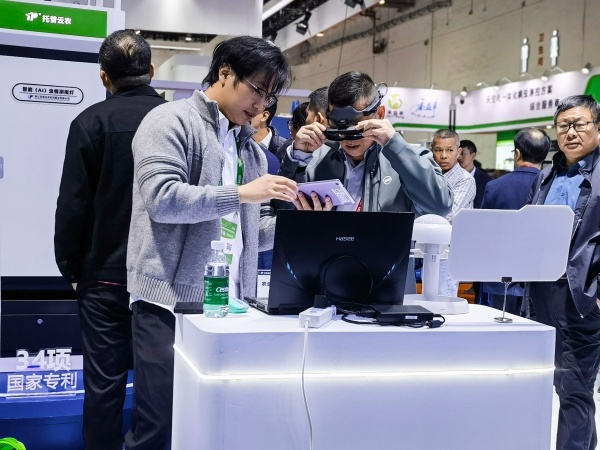 在AR体验环节,与会者戴上农业AR智能分析系统的眼镜发出惊叹:“数据直接‘浮’在眼前,像有了‘透视眼’!”该系统将病害分析结果、环境数据与实时画面完美叠加,通过语音控制,即可获取作物长势与病虫害分布信息,实现植保的智能升级。